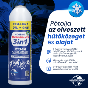 Alaska Refrigerants 3v1 náhradní chladivo za R134a, s olejem PAG 100 a těsnicí přísadou + náhradní chladivo za R134a