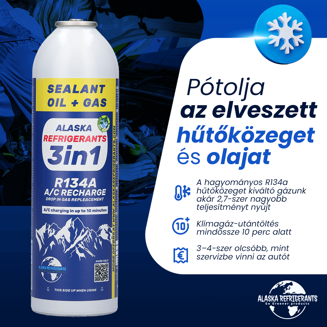 • Jedna láhev chladiva 3in1 HC134a Alaska Refrigerants odpovídá 500 g plynu typu R134a.